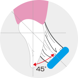 歯と歯茎の境目に45度の角度で毛先をあて、小刻みに動かします。目的の箇所に当たっているか鏡などで確認しながら1本1本磨きましょう。前後に大きく動かしても、毛先が歯と歯の間に当たらずプラークコントロールのための歯磨きができません。